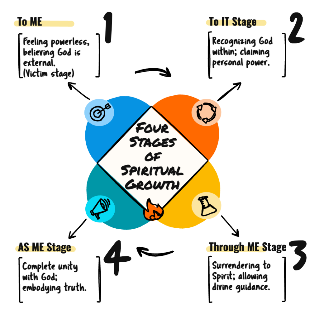 As Me – Total unity. You experience complete oneness with the Divine, living the truth that “I and the Father are one.” You become the expression of Spirit itself.
